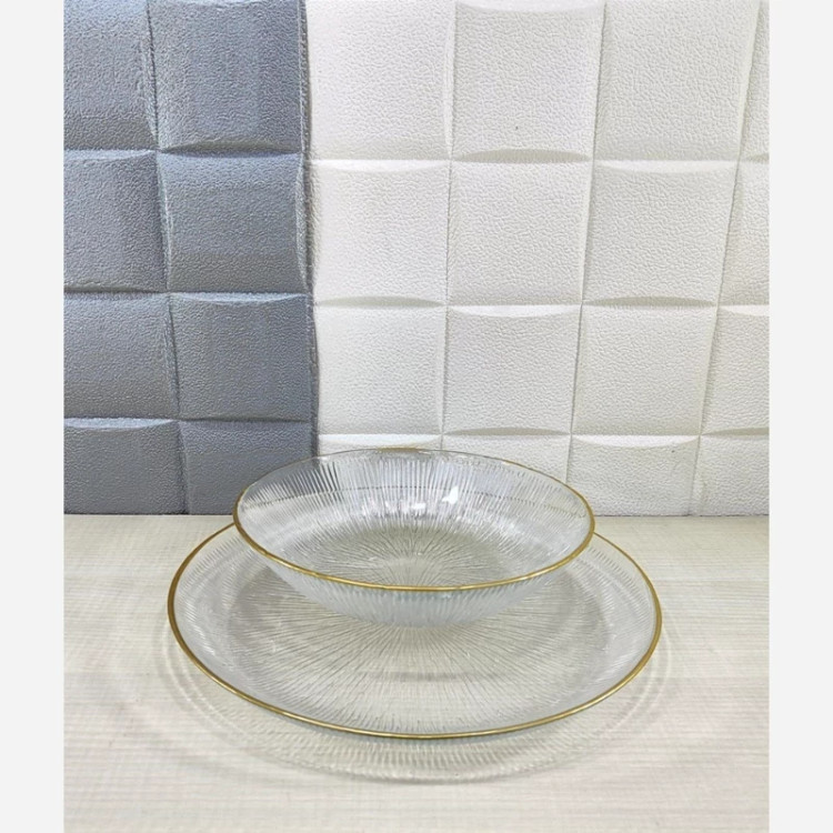 پلو خوری و خورش خوری بلور طرح سولو لب اکلیل طلایی و نقره ای (پس کرایه)