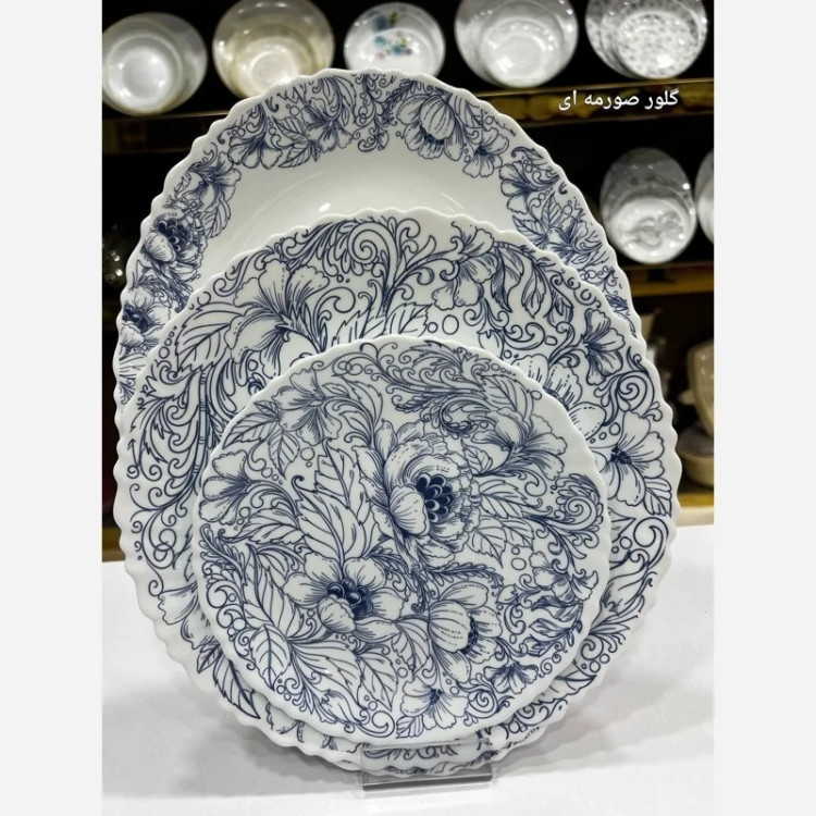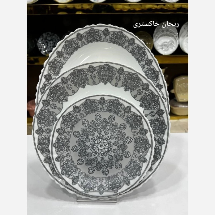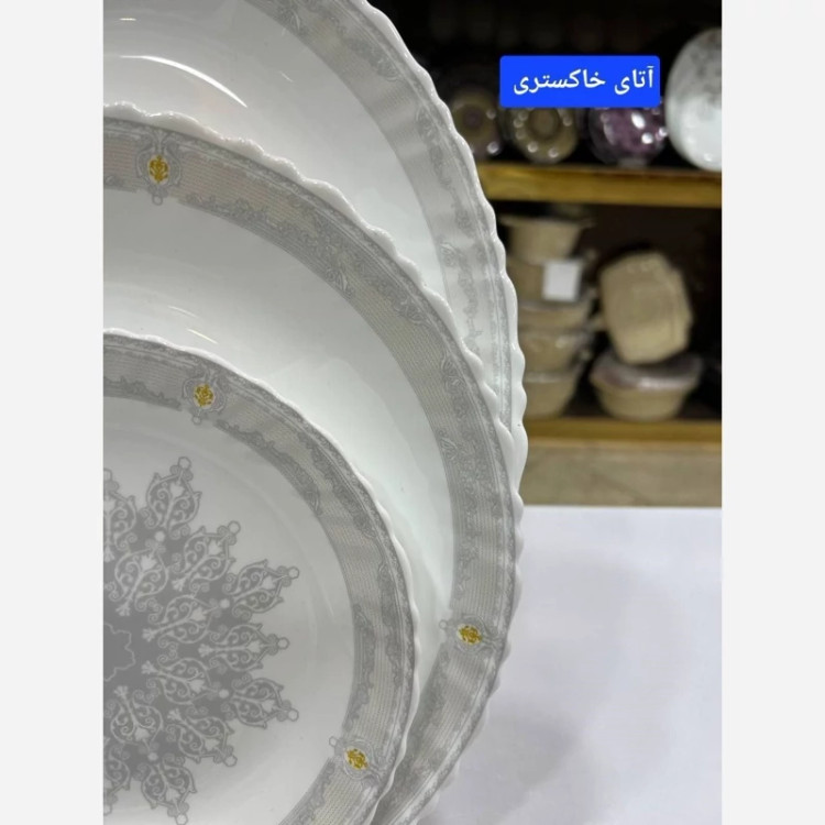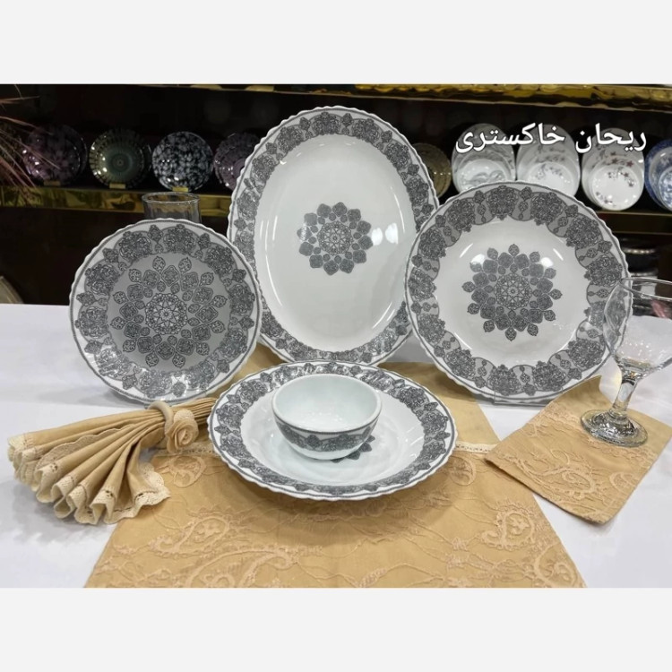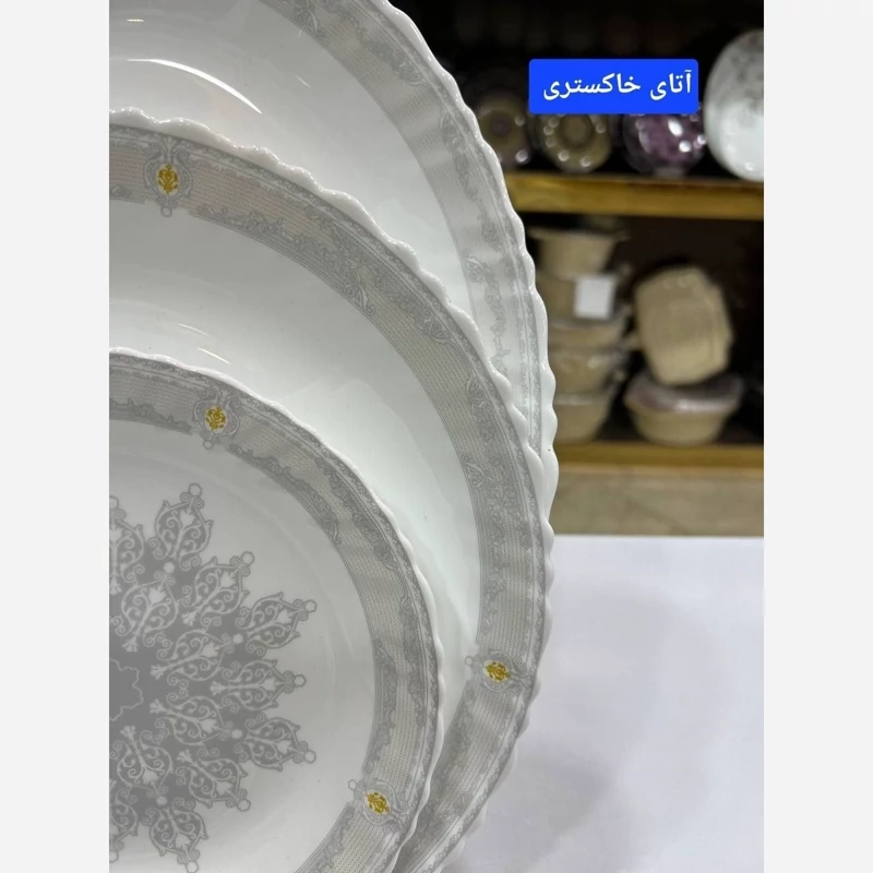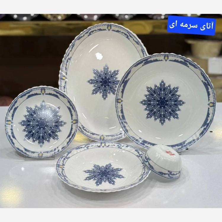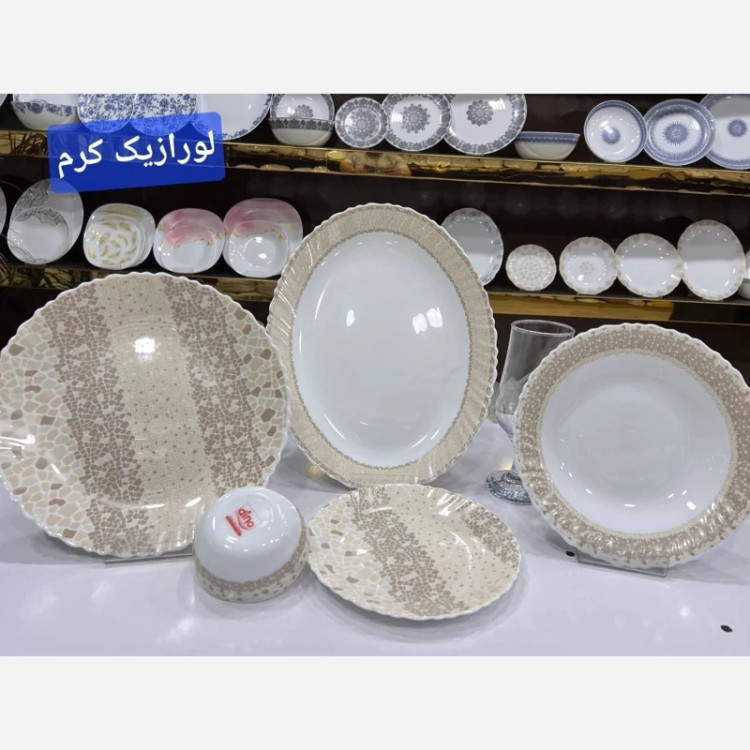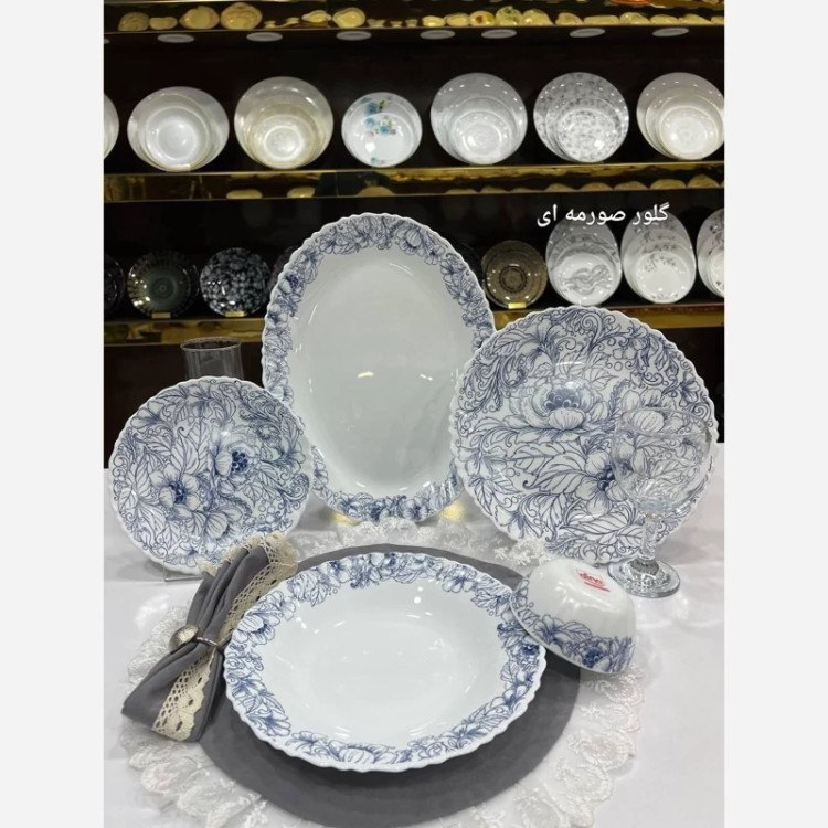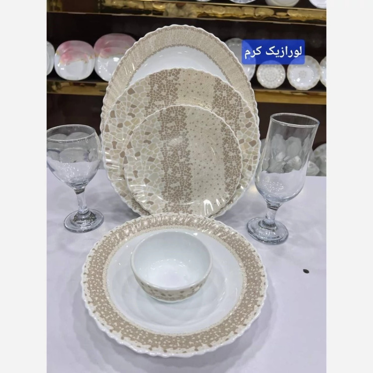 ارکوپال مقصود ✅سرویس 25پارچه لب پیچ برند دینو،در 2طرح متنوع شامل 6عددپلو,6عددخورشت,6عددپیش دستی،6عددپیاله،1عدد دیس