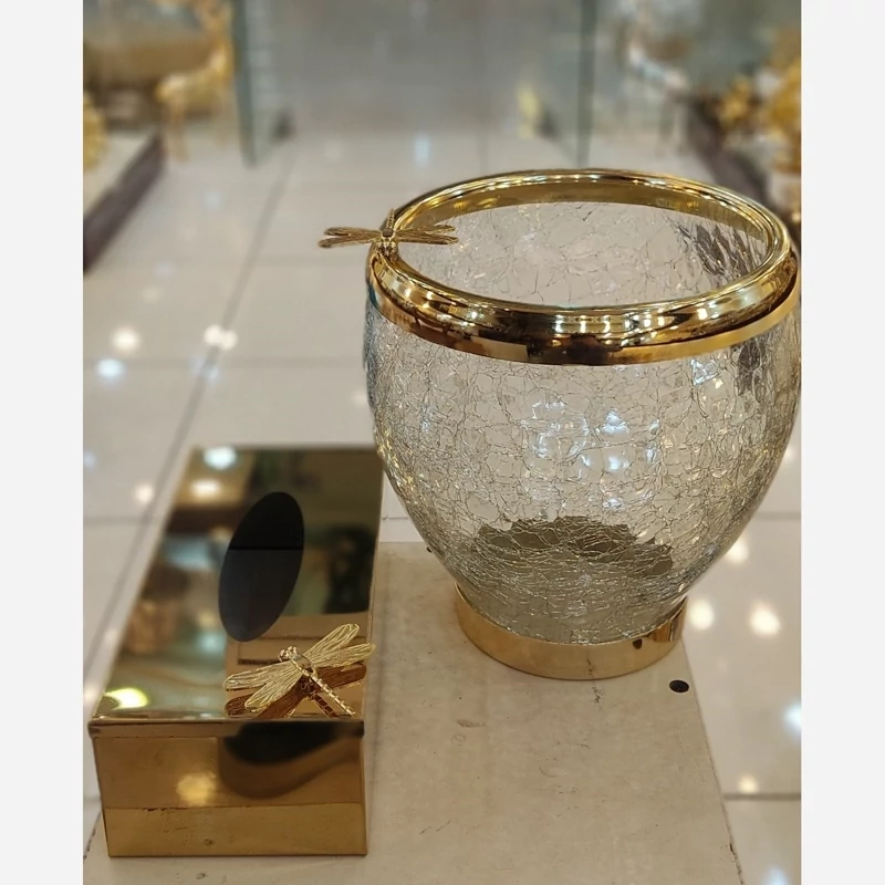 ست سطل ودستمال شیشه ترک و شیشه ساده دورنگ طلایی و نقره ای کیفیت ابکاری درجه1 فورتیک به دلیل شکستگی بودن ارسال برای شهرستان فقط از طریق باربری میباشد