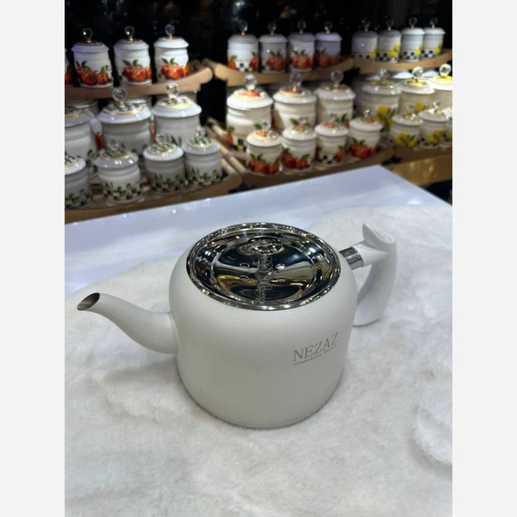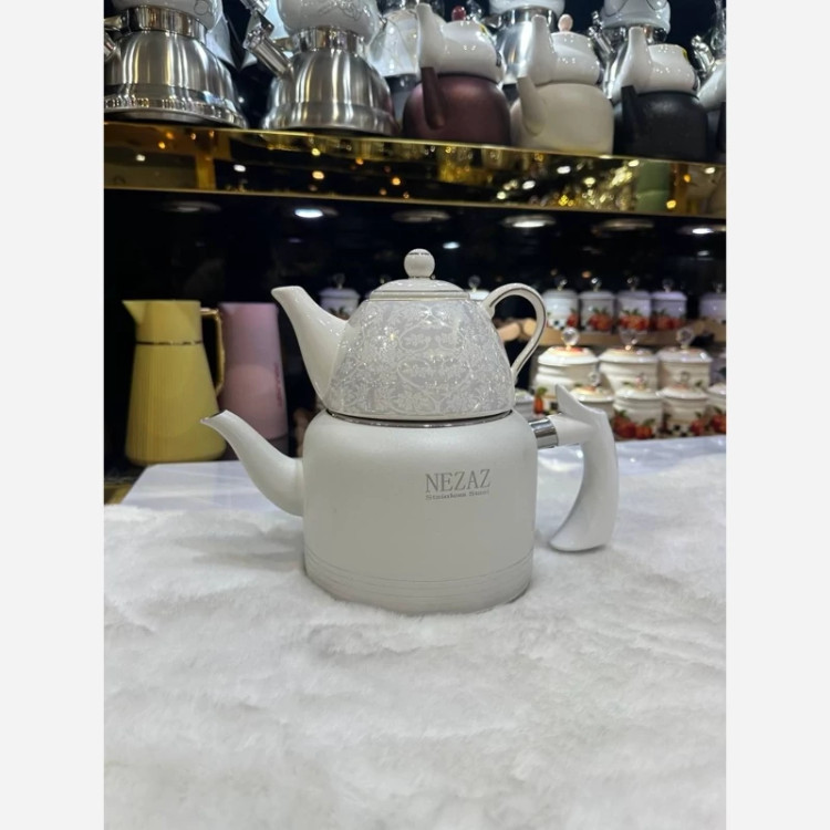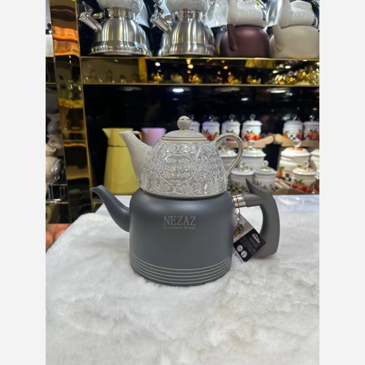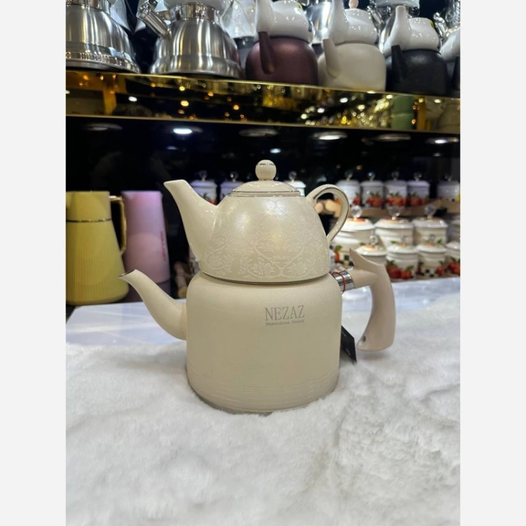 کتری قوری استیل رنگی 🤩 با قوری گلدار جذاب جنس کتری استیل ضد زنگ ورق ضخیم با کفه چدنی ضخیم جنس قوری چینی درجه یک جنس دسته باکالیتی نسوز یک سال ضمانت نامه شرکتی گنجایش کتری 2/5 لیتر