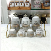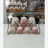 سرویس پاسماوری مدل ارامیس هفت تکه با استند فلزی جنس درجه یک با کیفیت رنگ و طرح کاملا ثابت موجود در 5 ترکیب رنگ ست شامل 3 عدد پاسماوری 4 عدد جا ادویه 1 عدد استند فلزی