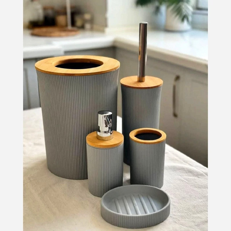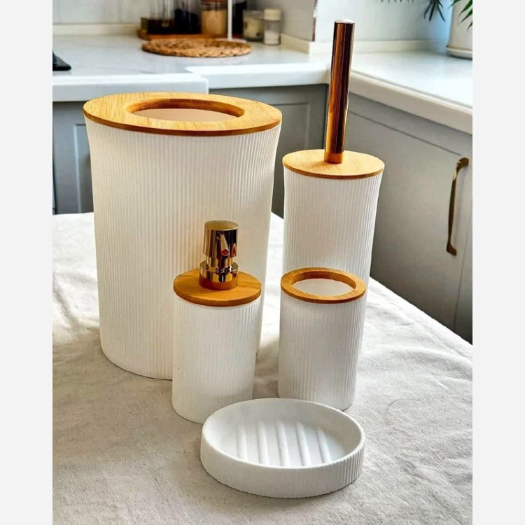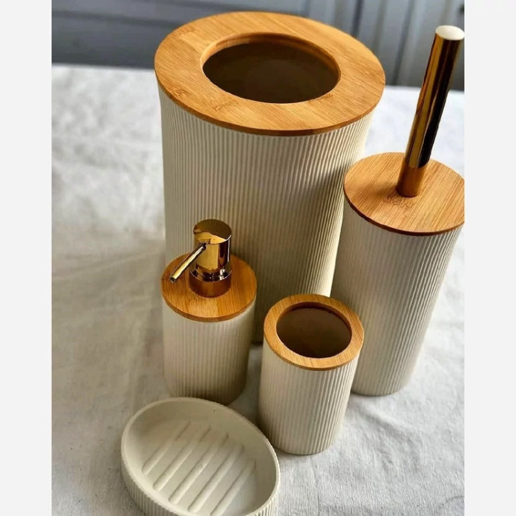 کدوم رنگش به سرویست میاد؟🥹 به جای خرید جنس خارجی یا مبلغای گرون این محصول ایرانی از برند لیمون رو بخرید کیفیتش از خارجیشم بهتره💯 جنس چوب بامبو هرسرویس پنج تکه میباشد شامل:جامسواکی،فرچه،جامایع،جاصابونی،سطل درسه رنگ طوسی ، کرم ، سفید