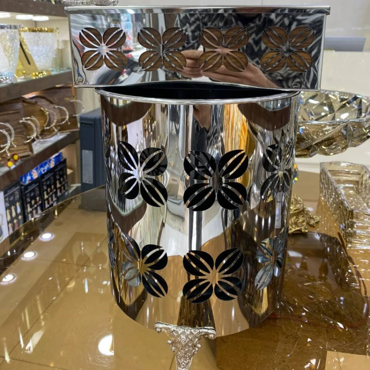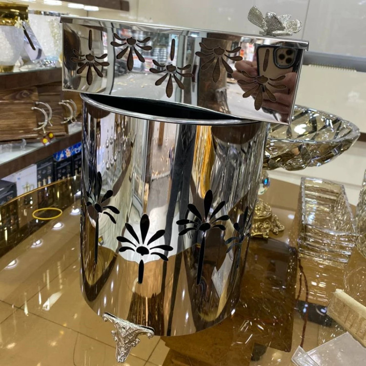 سطل وجادستمال های فلزی رنگ سیلور باابکاری فوق العاده
