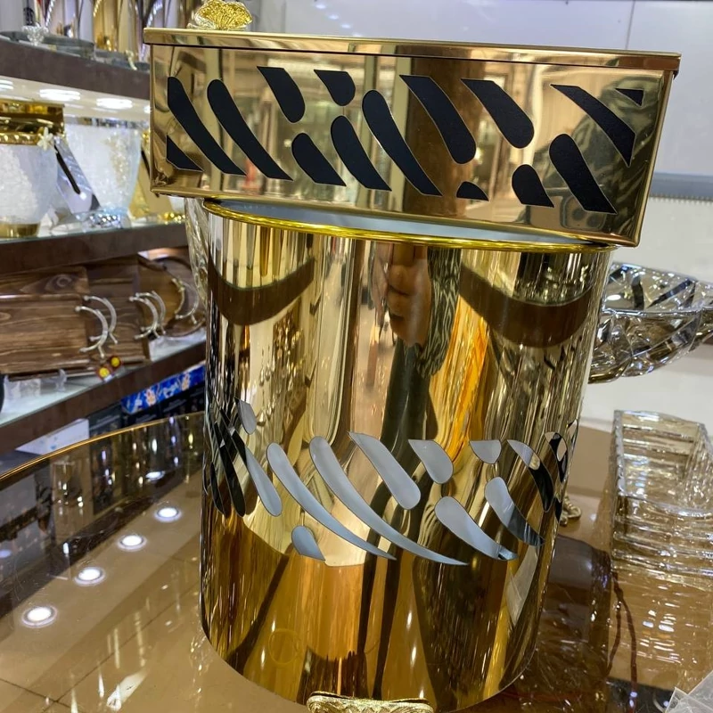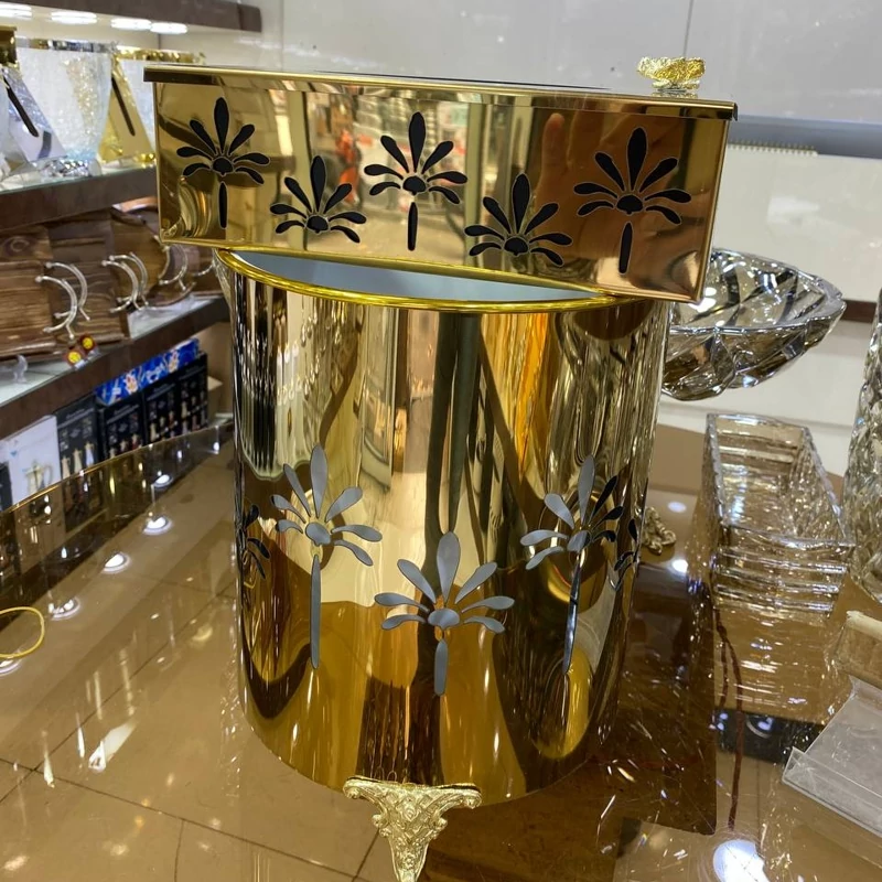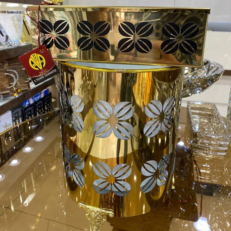 ست سطل ودستمال های فلزی رنگ طلایی باابکاری فوق العاده