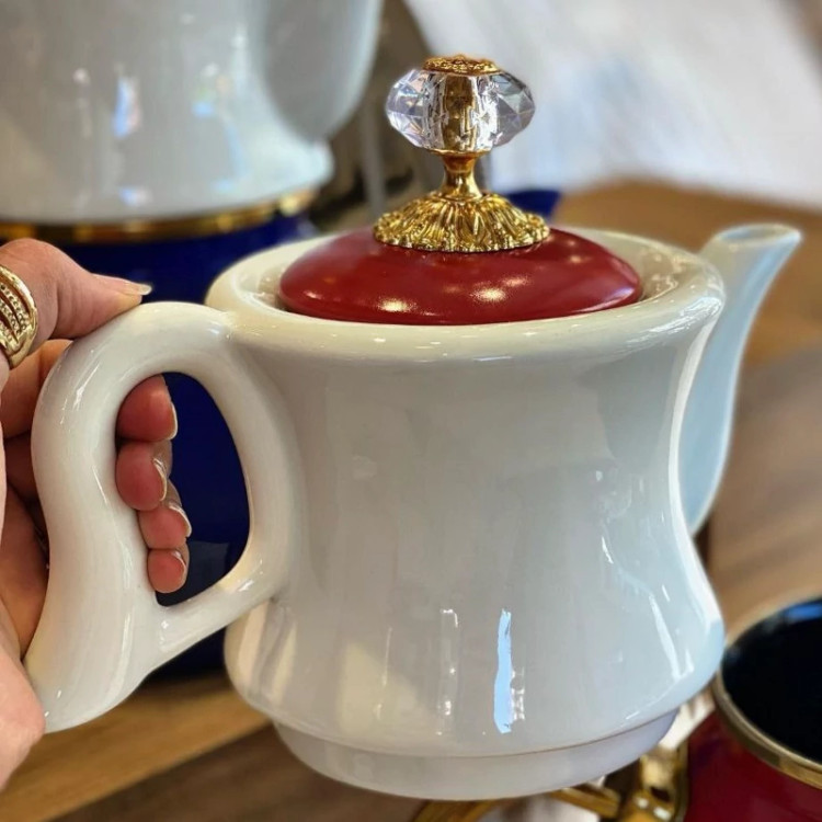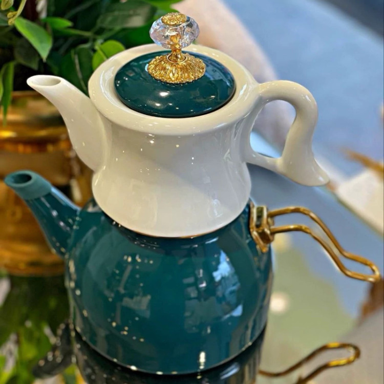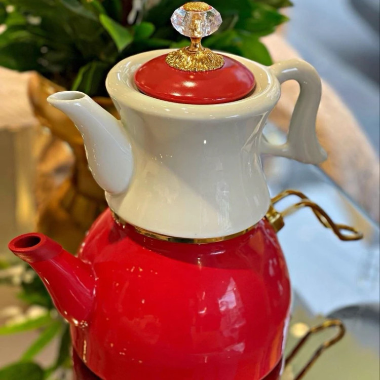کتری قوری درب الماسی محصول ترکیه🇹🇷🇹🇷🇹🇷 جنس کتری لعابی با گرانیت سه لایه پوششی جنس قوری چینی دستگیره ها از جنس استیل آبکاری شده و رنگ ثابت دستگیره در اثر حرارت داغ نمیشود ظرفیت کتری:2.650 لیتر ظرفیت قوری:1.150 سی سی در چهار رنگ سفید،قرمز،آبی و سبز