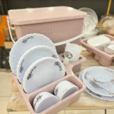 پك ظروف مسافرتی ٧٠پارچه تهيه شده از مواد اوليه شامل: ٦بشقاب پلوخوري ٦بشقاب خورشت خوري ٦پيش دستي ٦كاسه ٦ليوان دسته دار ٦قاشق استيل ٦چنگال استيل ٦قاشق چايخوري استيل ٣كارداستيل درب بطري بازكن قندان نمكپاش ظرف ميوه دربدار درب جدا شونده كه كاربرد سيني دارد سبد آبكشي فلاسك سايز٤٦*٣٦*٣٠ ارسال با سراسر کشور از طریق پست و به صورت پسکرایه