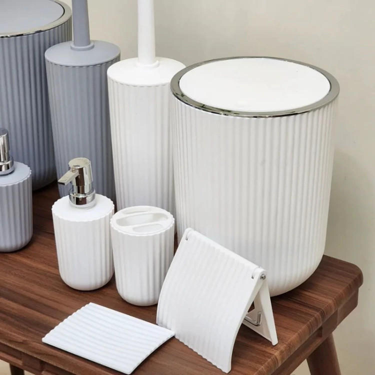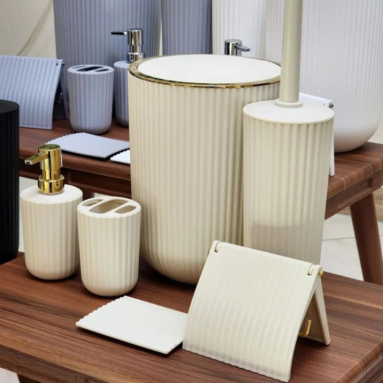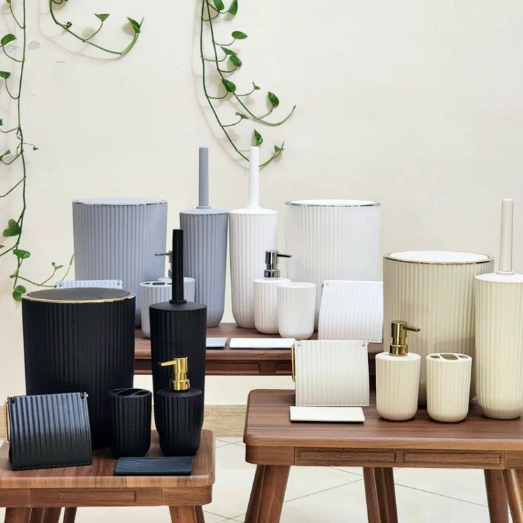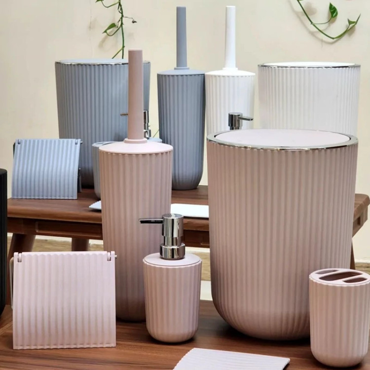 ست های بهداشتی زبرا برند همارا 6پارچه سطل/فرچه/جاصابونی/جامایع/جامسواکی/جادستمالی رنگبندی 5 رنگ جنس پلاستیک
