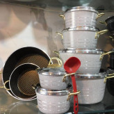 قابلمه 15 پارچه گلدانی مارک پرتو کالا رنگ طوسی صورتی مشکی