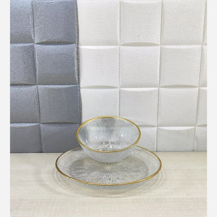 پیاله و پیش دستی بلور سولو لب اکلیل طلایی و نقره ای