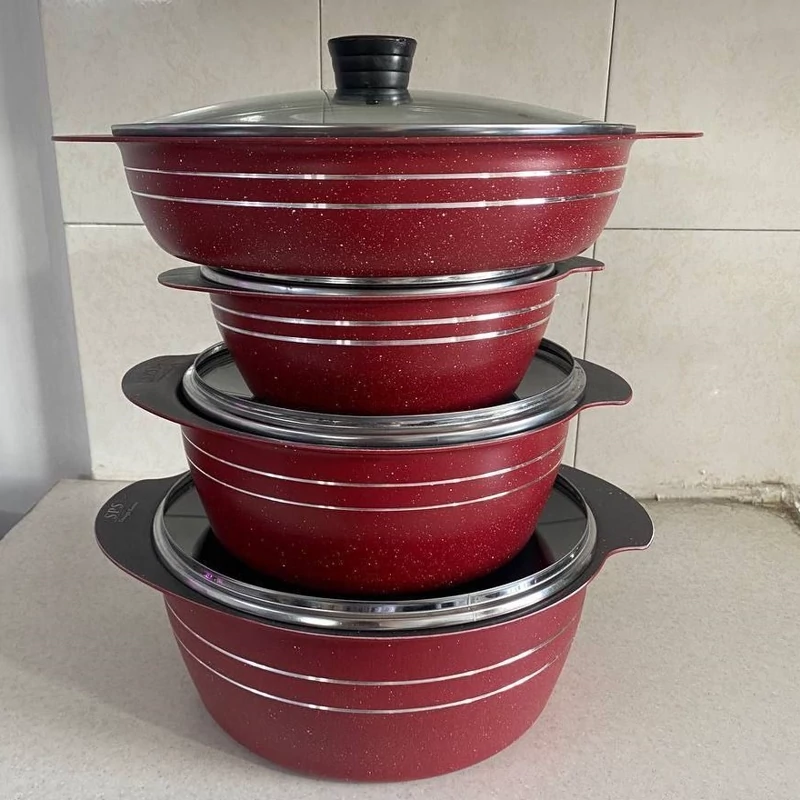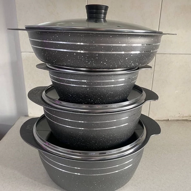 🤩 سرویس قابلمه چدن گرانیت SPS سوپرلوكس ☑️ سرویس 8 پارچه ✔️نچسب با کیفیت شامل 👇 قابلمه سایز 28 بادرب پیرکس قابلمه سایز 24 بادرب پیرکس قابلمه سایز 20با درب پیرکس تابه 2دسته سایز 28 با درب پیرکس دو دستگیره سیلیکونی