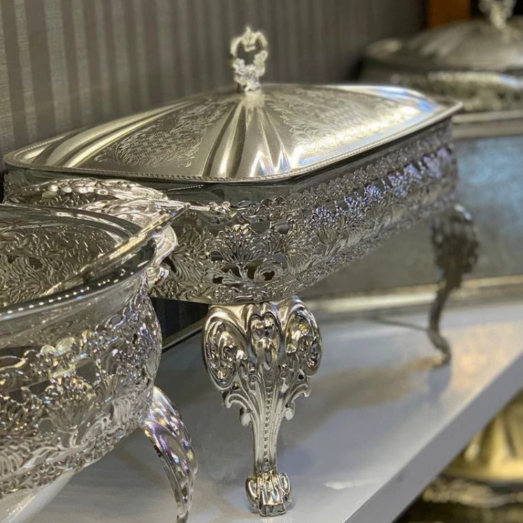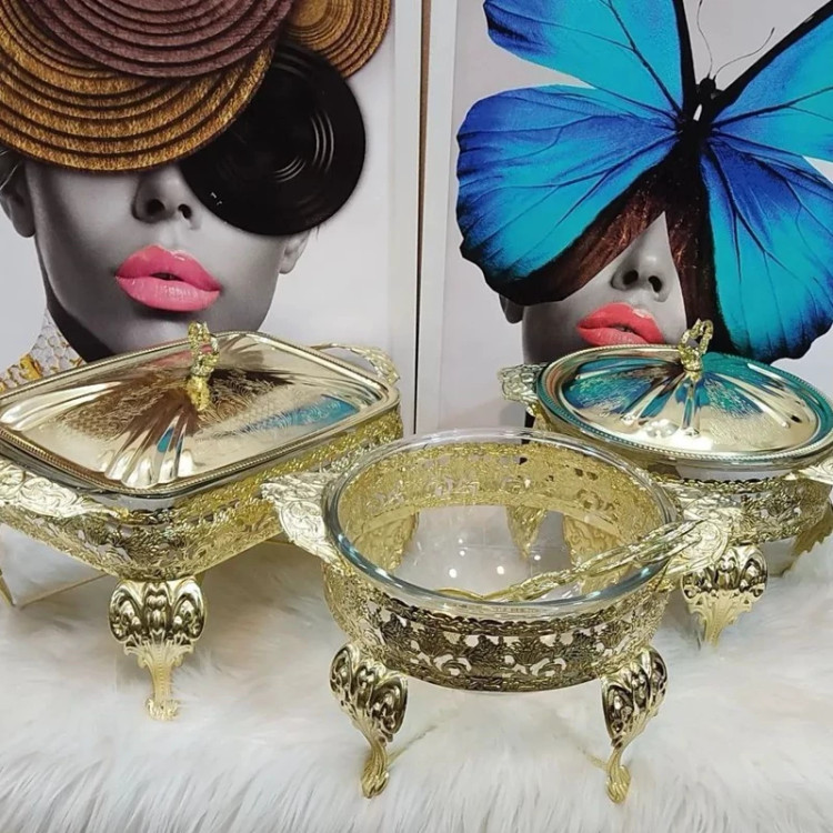 💥پک جهیزیه چهار عددی سوفله های دیانا 💥فوق العاده باکیفیت صادراتی 💥کارتن مادر شامل مرغ خوری،خورشت خوری،سالاد خوری و دیس کباب 💥قیمت فوق العاده عالی باصرفه👌 ◀️دارای ضمانت نامه کتبی 24 ماهه طلایی ونقره ای ست کامل همراه دیس کباب رنگ آنتیک /طلایی/نقره ای